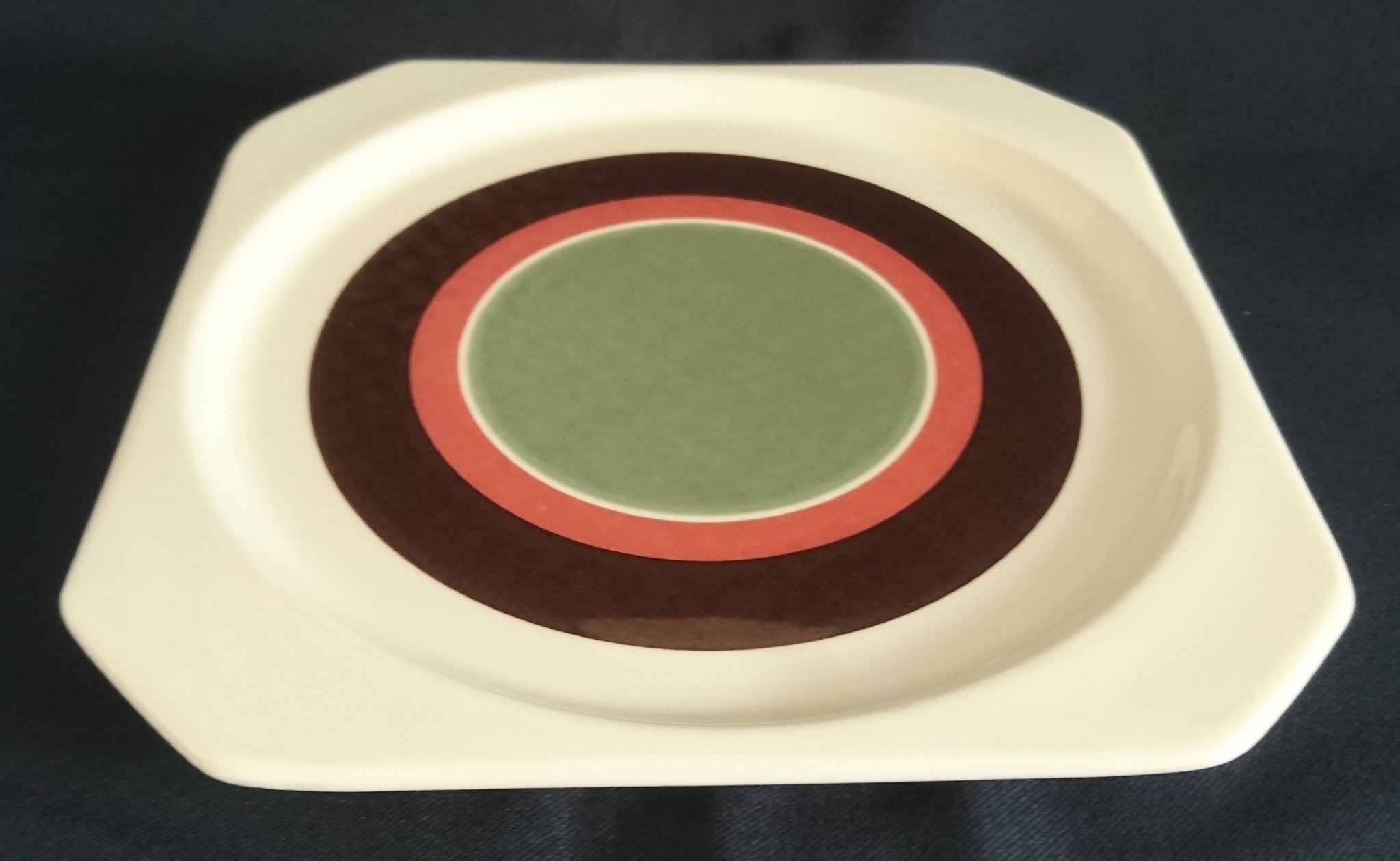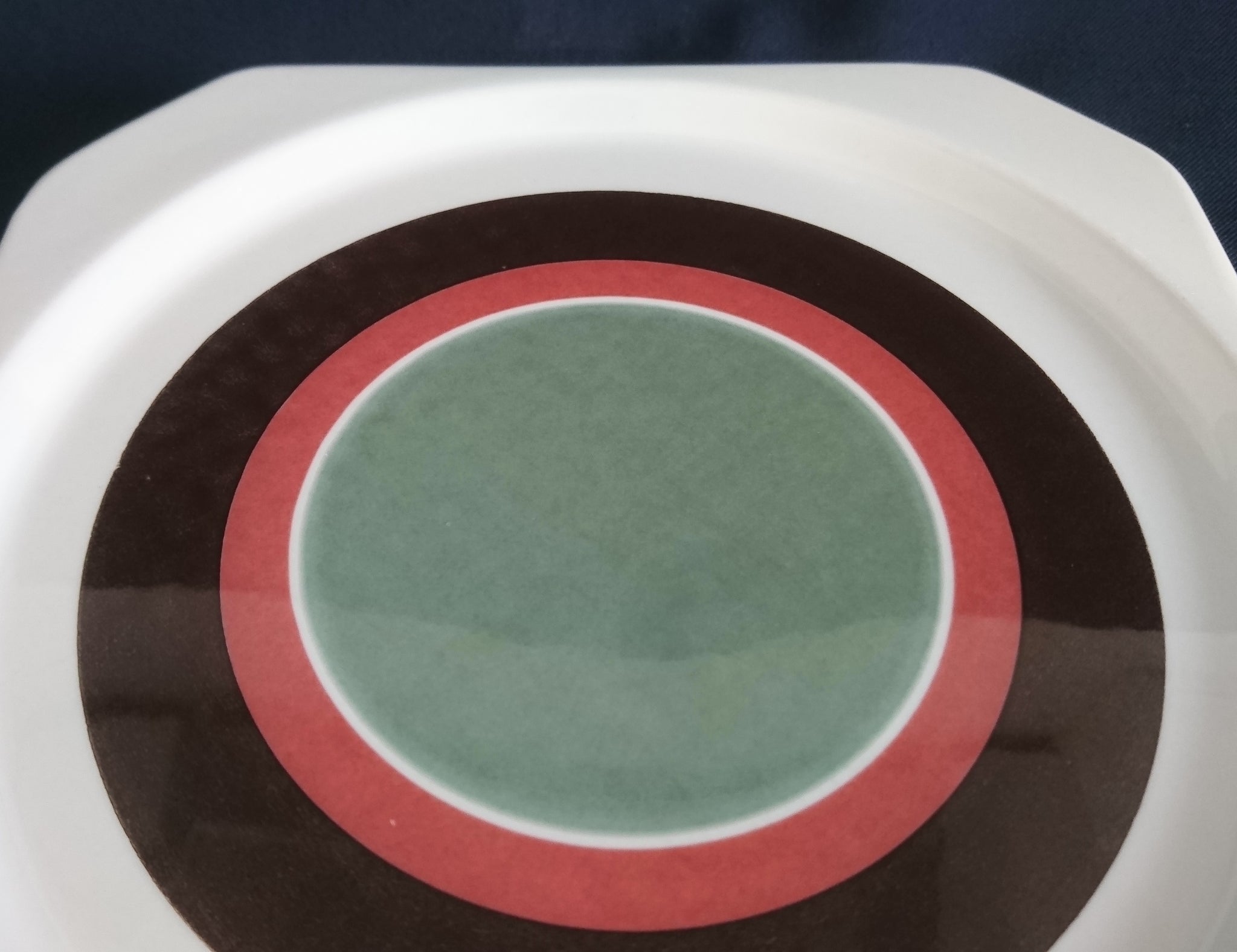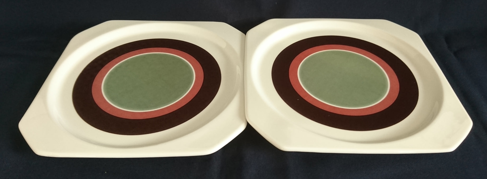 2er Set DESSERTTELLER "Avantgarde" - Keramik / Steingut, Modernes Kreise Streifen Dekor, Mittig Grün